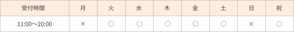 11時~20時(予約締め切り18時)