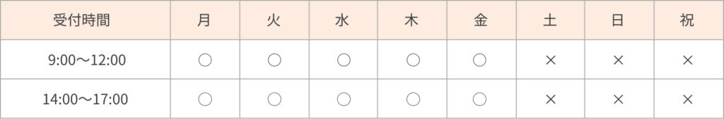 平日午前:9:00〜12:00