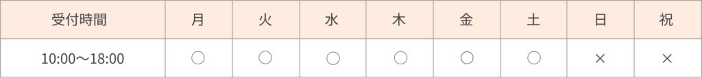 10:00〜18:00(最終受付時間17:00)