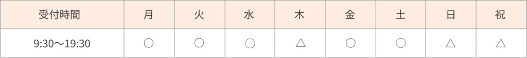 - 予約優先制です。カウンセリングは無料です。